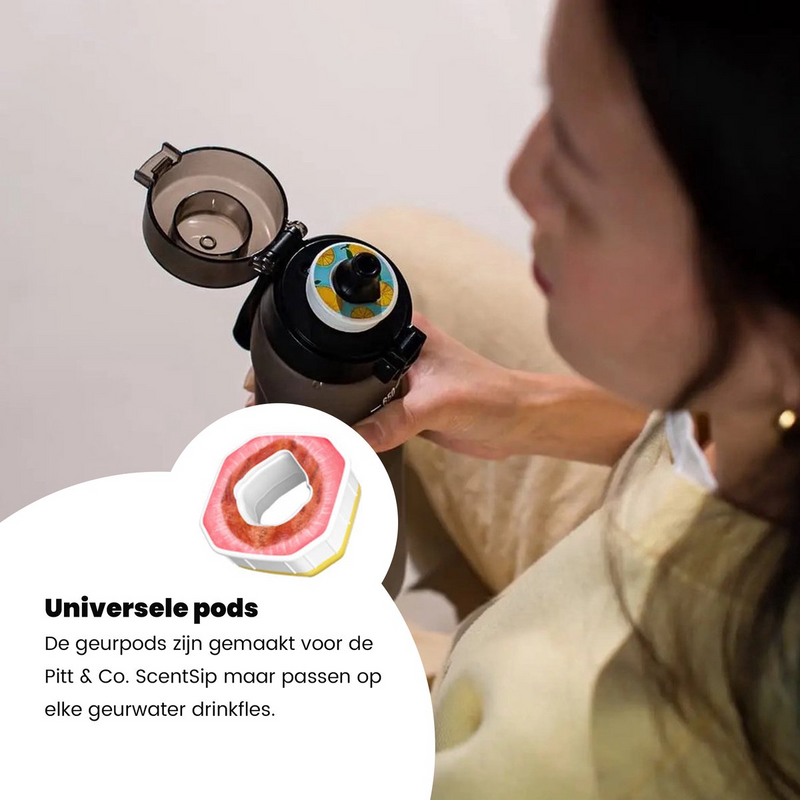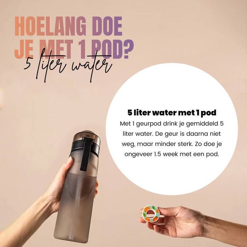 Nieuwe geurpods voor jouw drinkfles? Deze set van 5 pods is goed voor 25 liter.