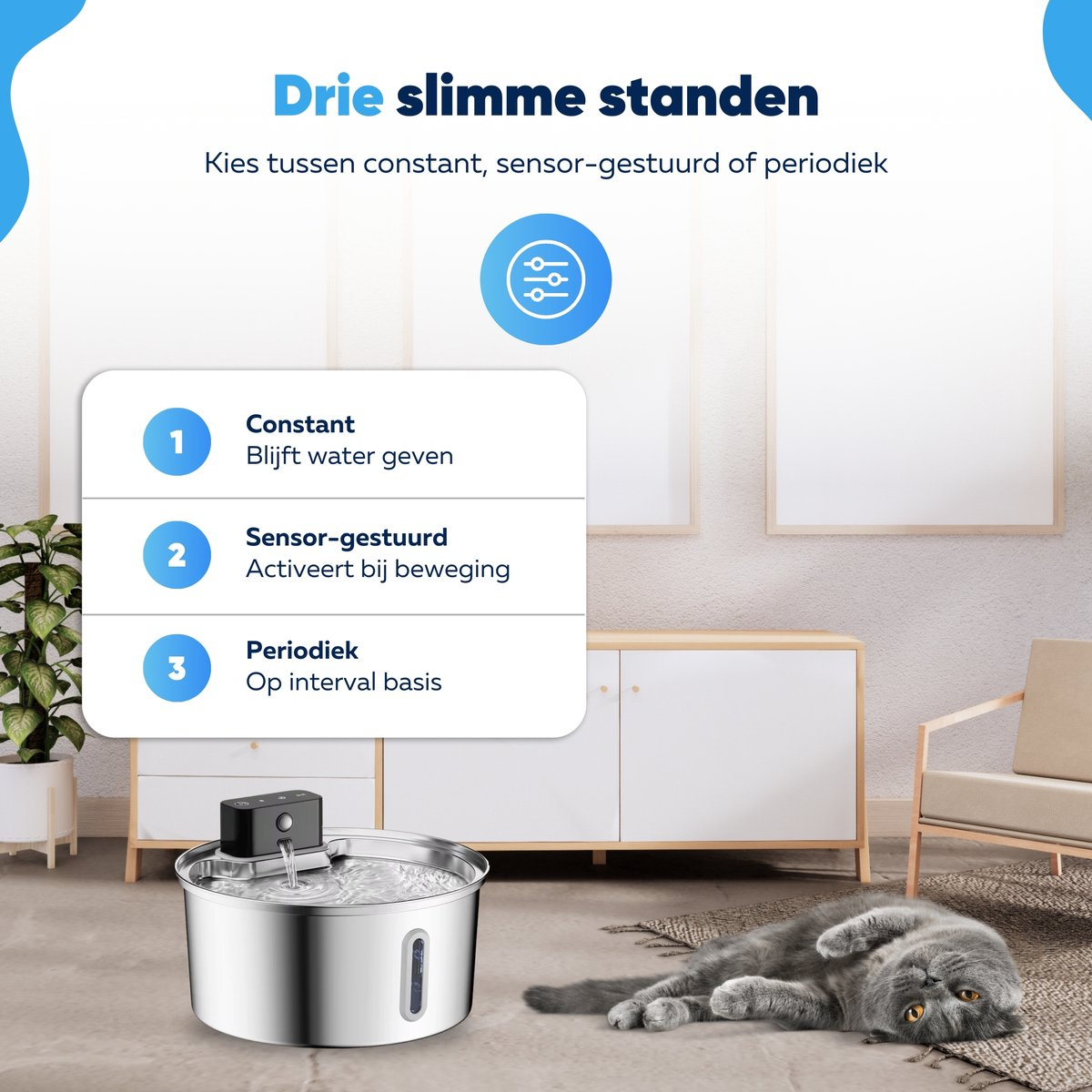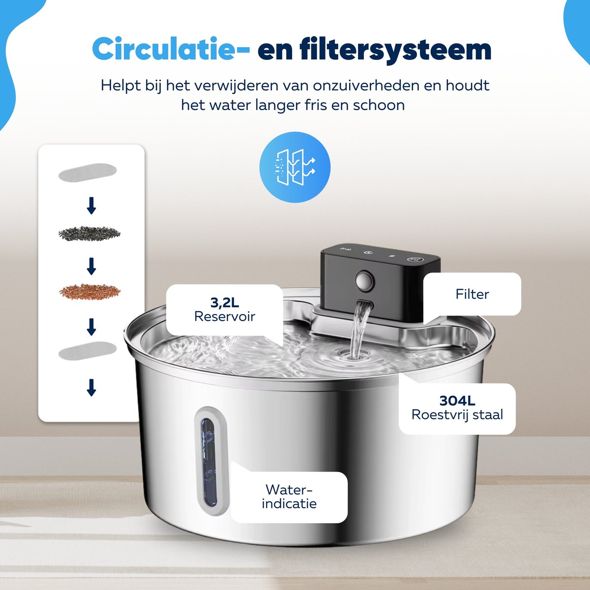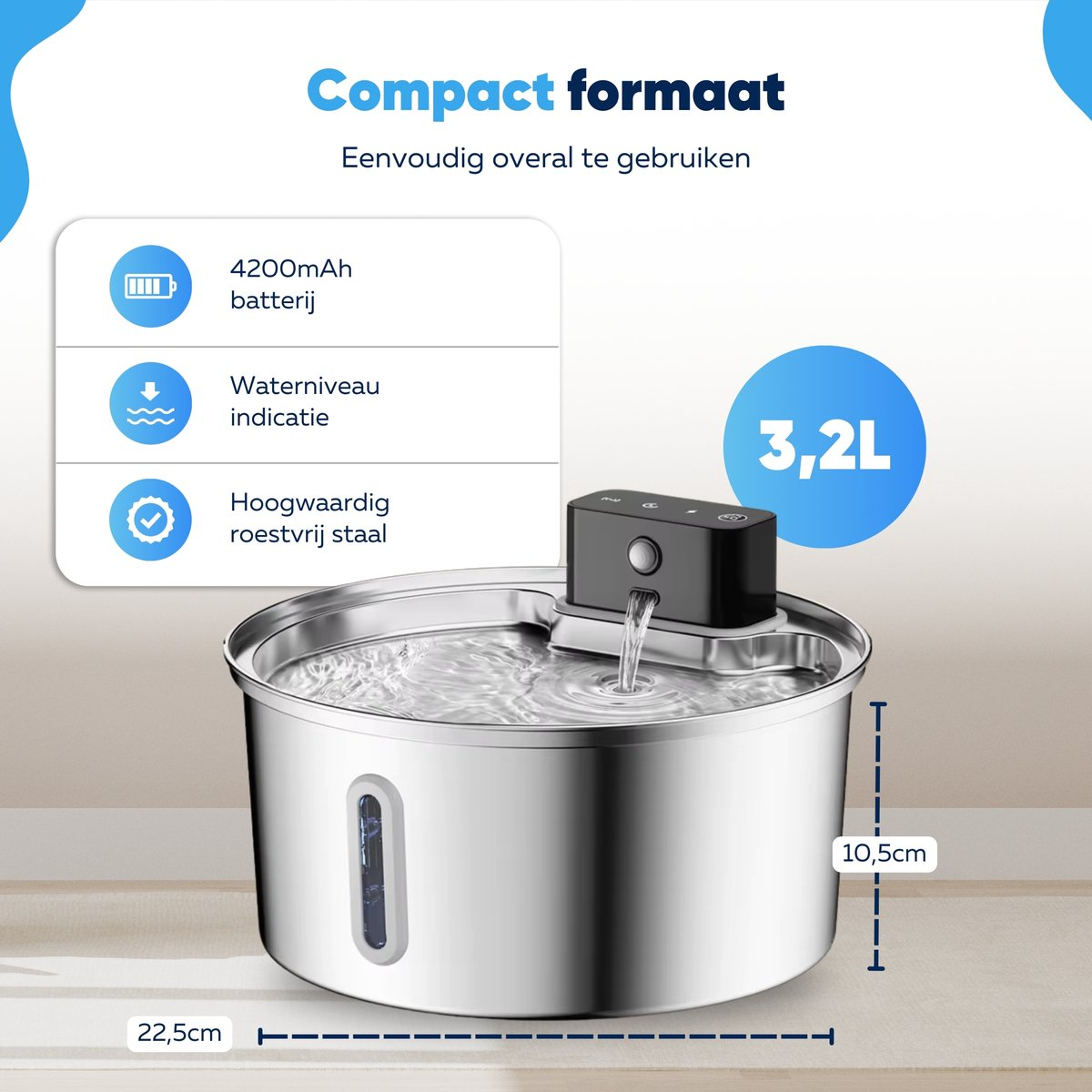 - 3.2 Liter Capaciteit: Genoeg water voor je kat voor minimaal een week – geen constante bijvullingen nodig.
