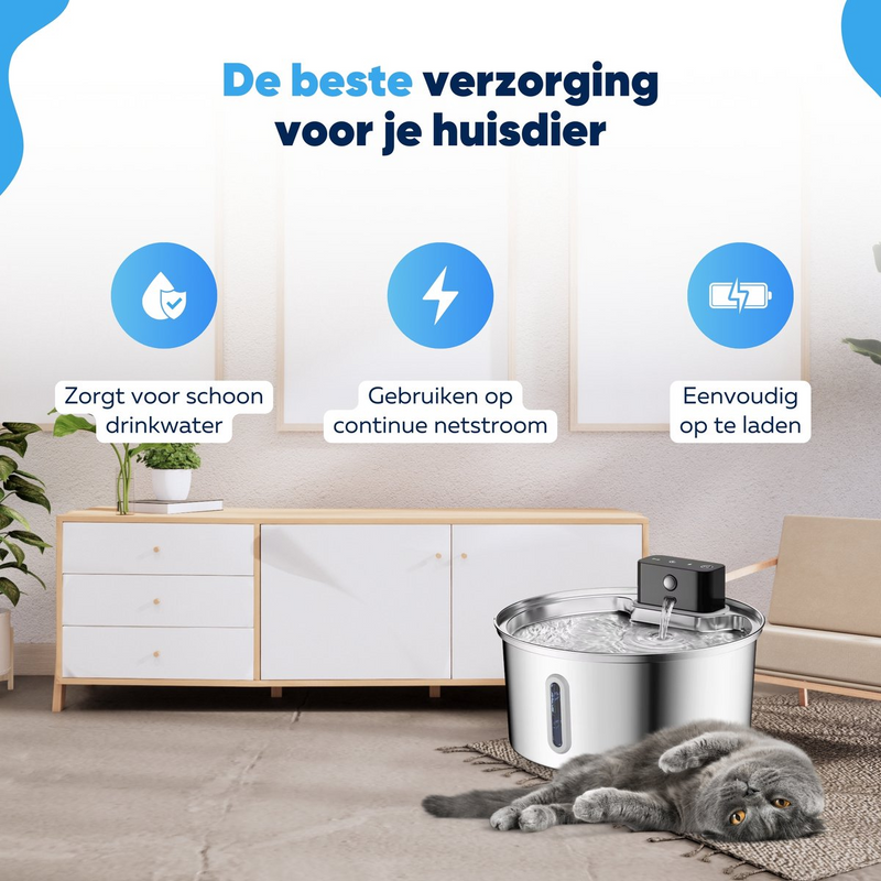 Zorg ervoor dat je kat altijd vers, gefilterd water heeft! Bestel nu de Pitt & Co Automatische Waterfontein en bied je kat het beste. Klik hier om te bestellen.