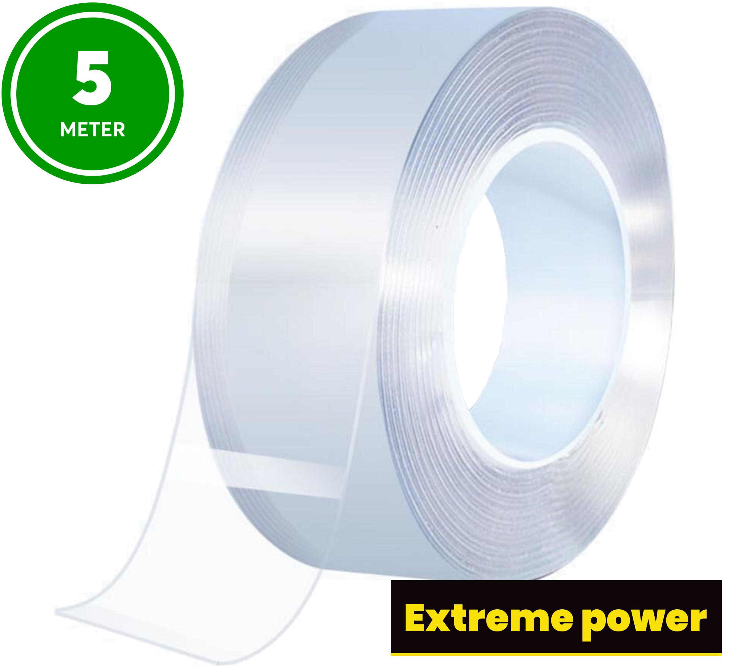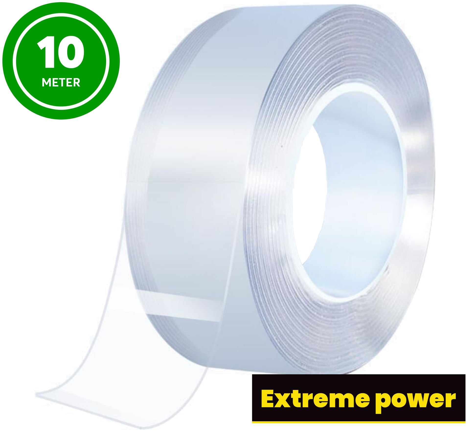 Als dit herkenbaar klinkt ben je waarschijnlijk opzoek naar NanoTape original. De tape is zeer krachtig, herbruikbaar, rekbaar, transparant en ook nog waterdicht. NanoTape, ook wel gekko tape of magic tape genoemd, plakt dubbelzijdig en laat geen lijmresten achter. Hij is 3cm breed en 1mm dik en de rol is 3 meter lang.
