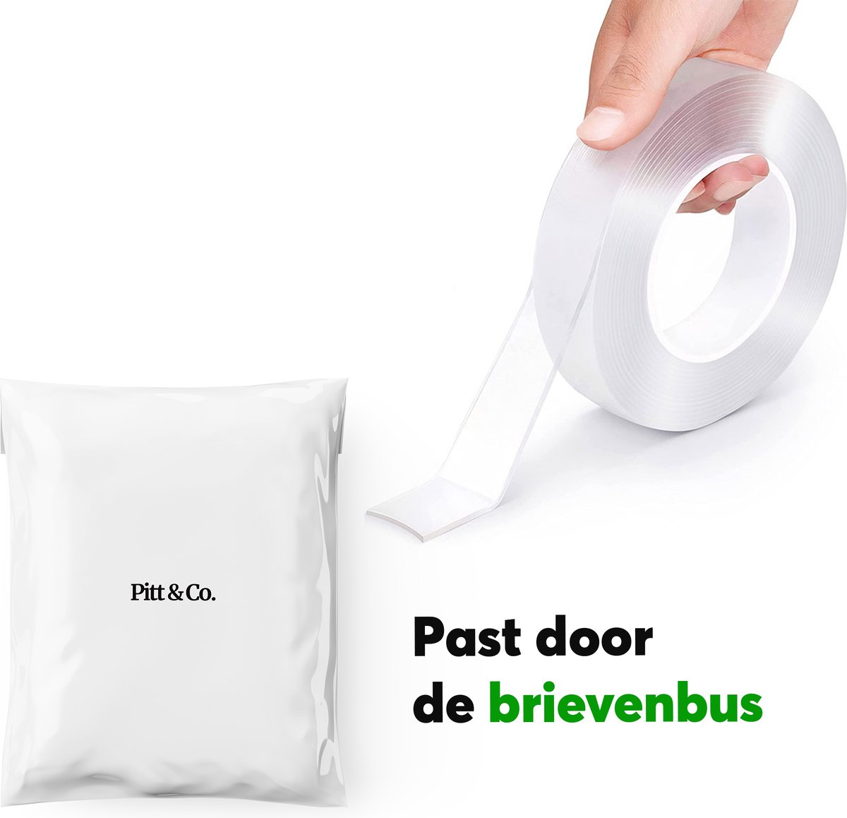 Sterk, rekbaar en dubbelzijdig Een stuk tape houdt tot 4.5kg vast. Dat is een hoop en ruim voldoende voor de meeste objecten. Ook is de tape rekbaar en plakt hij dubbelzijdig.