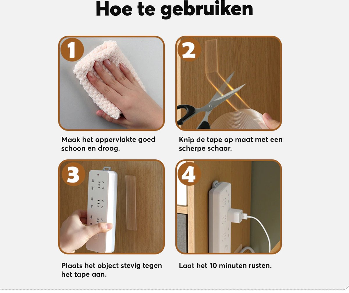 Misschien herken je dit. Je wilt iets ophangen maar je wilt of mag niet boren? Of, je wilt dat iets op zijn plek blijft zitten, een vloerkleed bijvoorbeeld. Je hebt normale dubbelzijdig tape geprobeerd, maar het blijf helaas niet zitten.