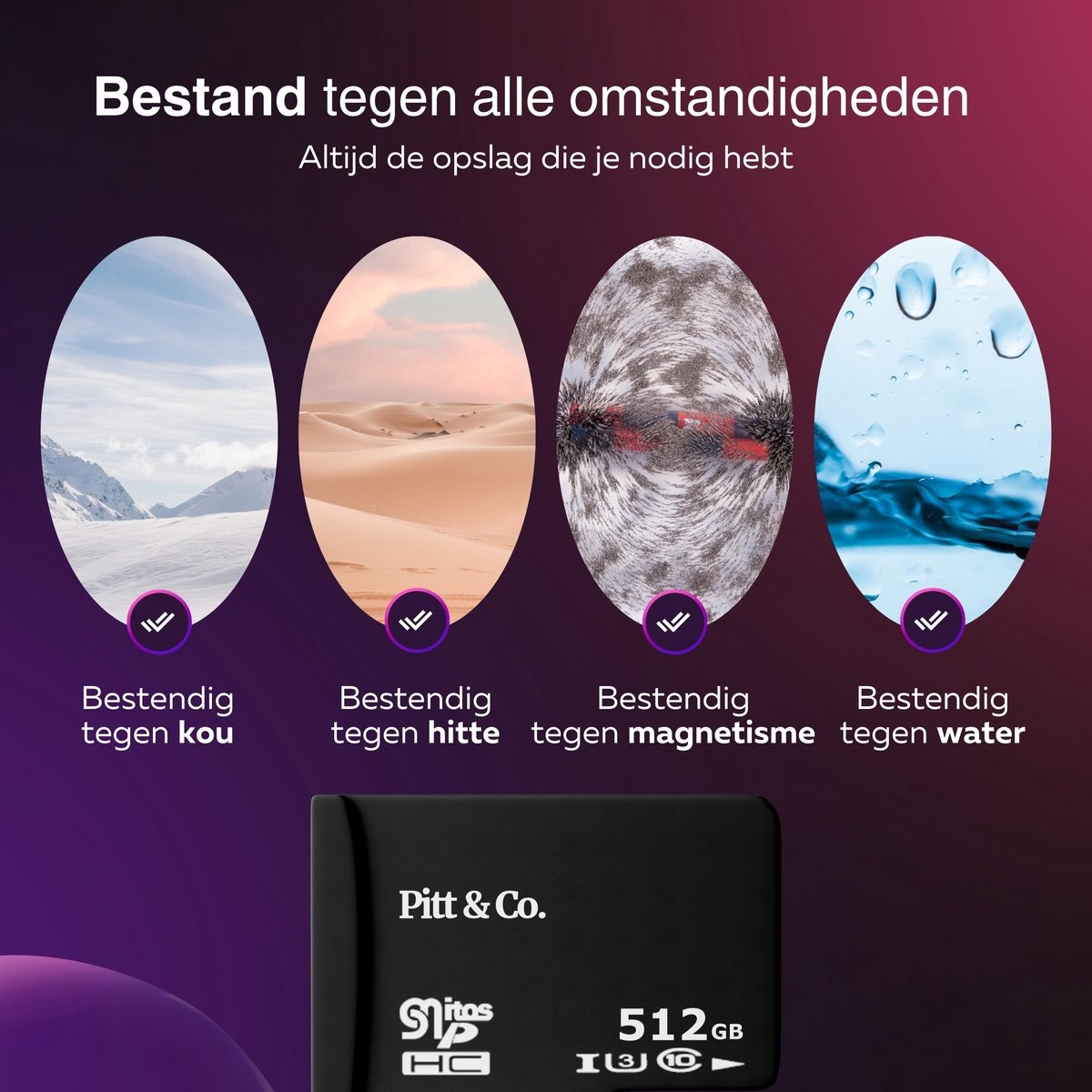 Of je nu je smartphone, camera, drone of gameconsole gebruikt, deze U3, A2, Class 10 geheugenkaart levert topprestaties. U3 zorgt voor stabiele 4K-video-opnames, A2 versnelt app-laadtijden en C10 garandeert betrouwbare gegevensopslag. Met 128GB opslagruimte hoef je je nooit meer zorgen te maken over ruimtegebrek. Bovendien is deze kaart water-, schok- en temperatuurbestendig, zodat jouw bestanden altijd veilig blijven. De meegeleverde SD-adapter maakt het eenvoudig om bestanden over te zetten naar je laptop of camera.