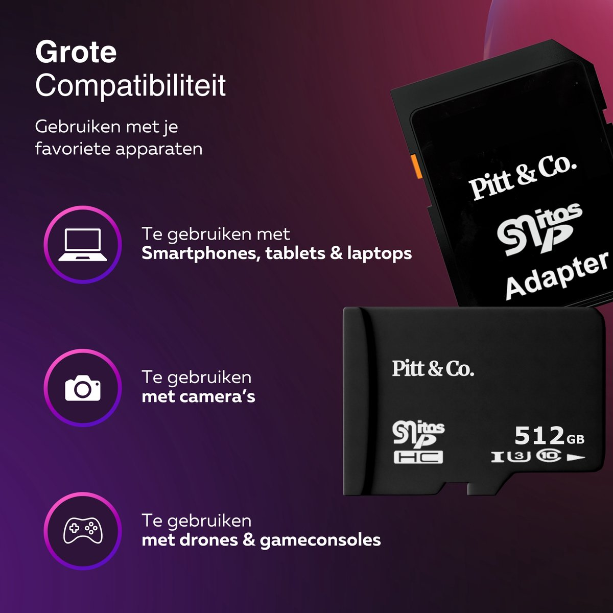 - 1x Pitt & Co. 128/256/512 GB Geheugenkaart