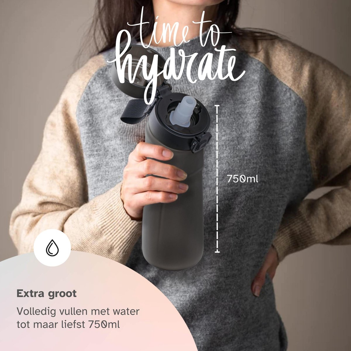 Verhoogde Capaciteit: Met een royale capaciteit van 750 ml heb je altijd water binnen handbereik.