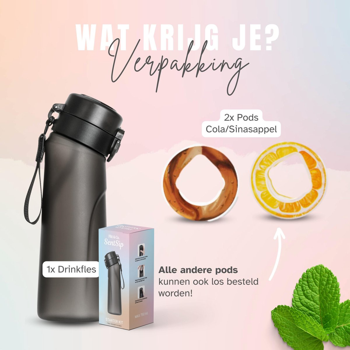 De Drinkfles is een unieke waterfles die gewoon kraanwater een heerlijke smaak geeft door gebruik te maken van geurpods.