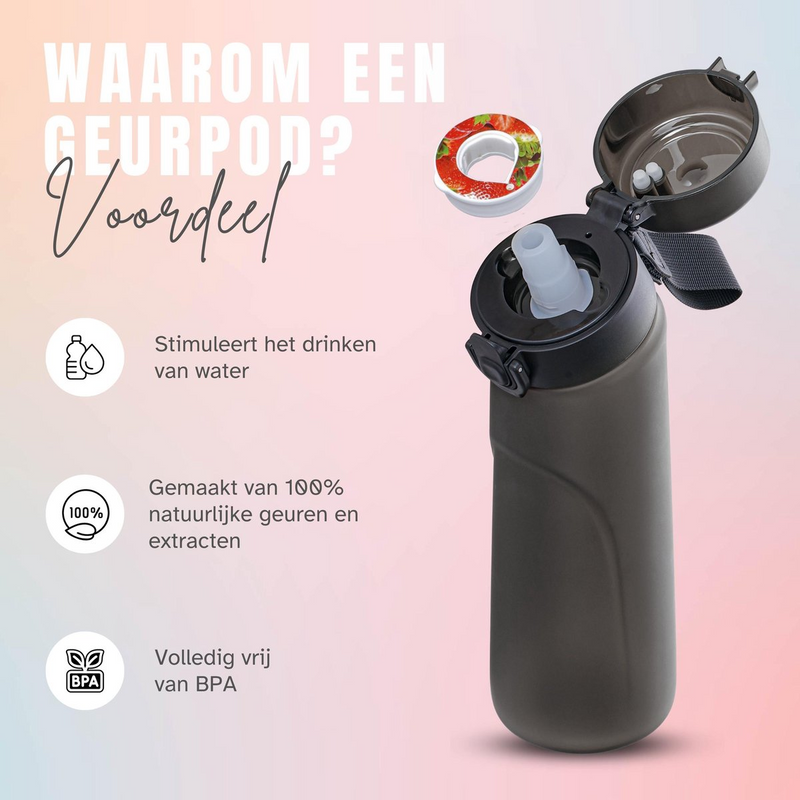 100% Vegan & Vrij van BPA: Onze vegan geurpods zijn gemaakt van natuurlijke kruiden en aroma's. Bovendien is de fles vrij van BPA, zodat je met een gerust hart kunt hydrateren.