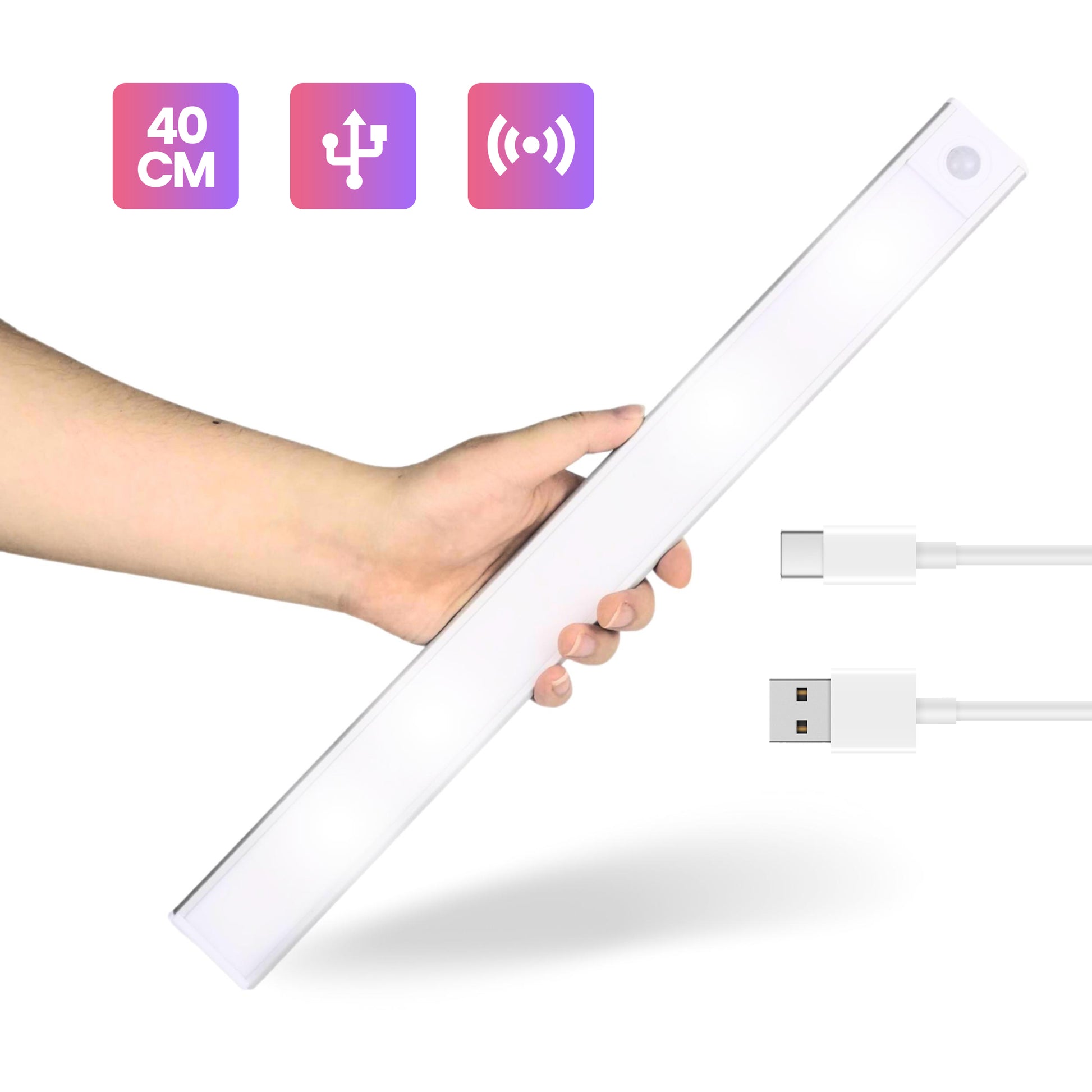 Magnetisch – De verlichting zelf is magnetisch. De bijgeleverde stickers houden hem op zijn plek. Je pakt hem er zo makkelijk af als je wilt opladen.