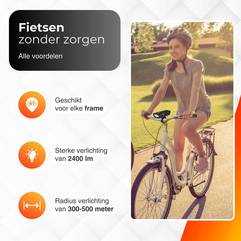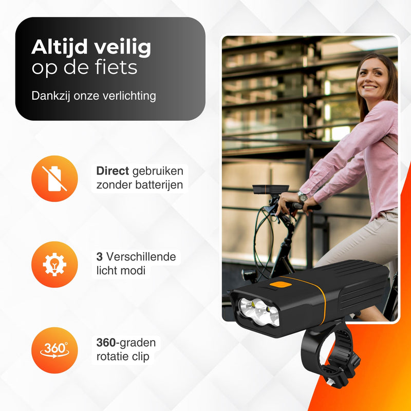 Als fietser zonder licht ben je kwetsbaar in het verkeer. Zichtbaar zijn voor je omgeving en zien waar je rijdt zijn daarom een absolute must. Met deze fietsverlichting set kun je veilig de weg op. De fietslamp biedt een ongeëvenaarde lichtsterkte van 500 lumen led, waardoor je altijd goed zichtbaar bent voor andere weggebruikers. Het bijgeleverde heldere achterlicht maakt de set compleet.