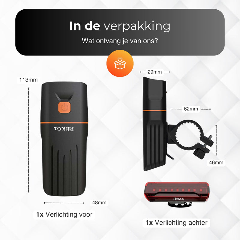 Voor & achterlicht Complete set met voor en achterlicht. Je kunt direct te weg op.