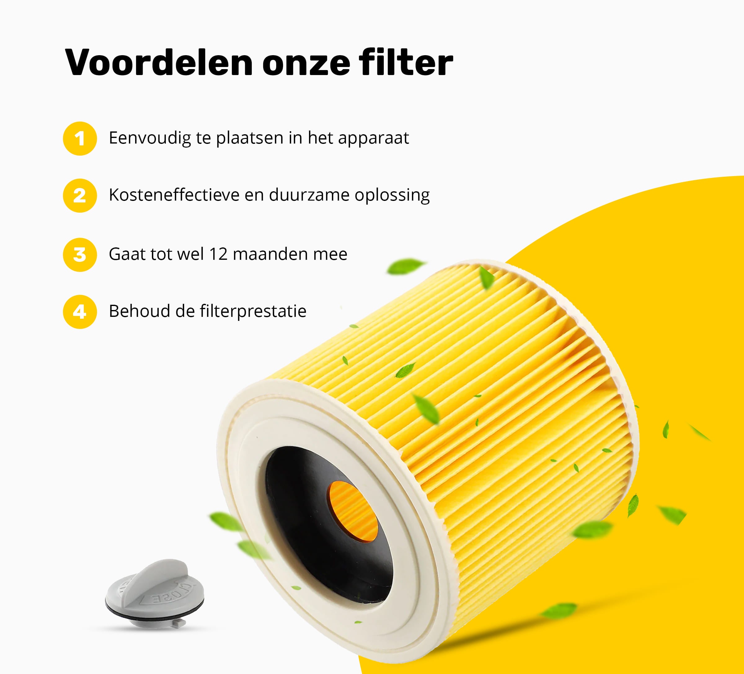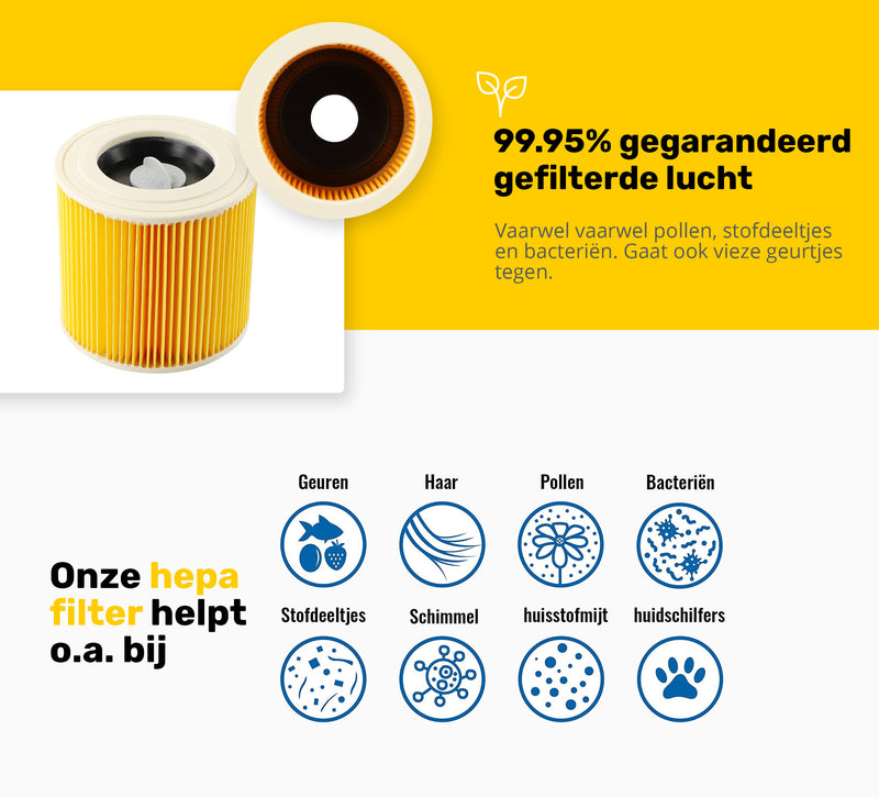 Haal de frisse lucht in huis met deze hoogwaardige HEPA-filter, geschikt voor Kärcher stofzuigers.