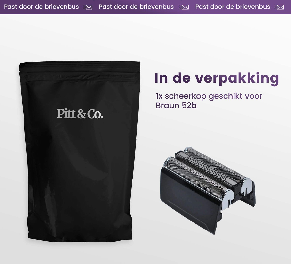 Deze scheerkop wordt geleverd in een brievenbus pakje. Dit zorgt voor een snelle levering waar je niet voor thuis hoeft te blijven.