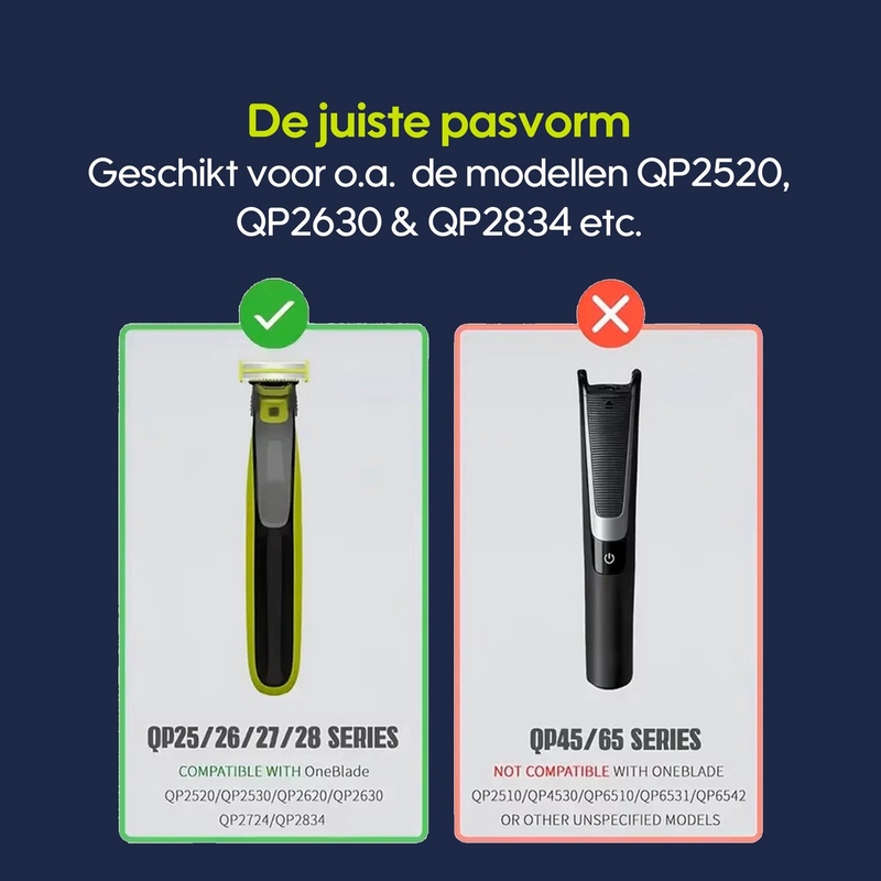 Ben je klaar met botte mesjes en dure vervanging? Wij bieden een slim alternatief met deze set van 3 vervangmesjes, geschikt voor Philips OneBlade modellen. Onze mesjes zijn ontworpen voor een soepele, comfortabele scheerervaring – of je nu trimt, scheert of je contouren bijwerkt.