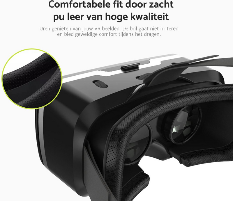 Zachte fitting het zachte PU leer zorgt voor een comfortabele VR ervaring. Je vergeet bijna dat je de bril op hebt.