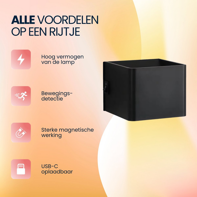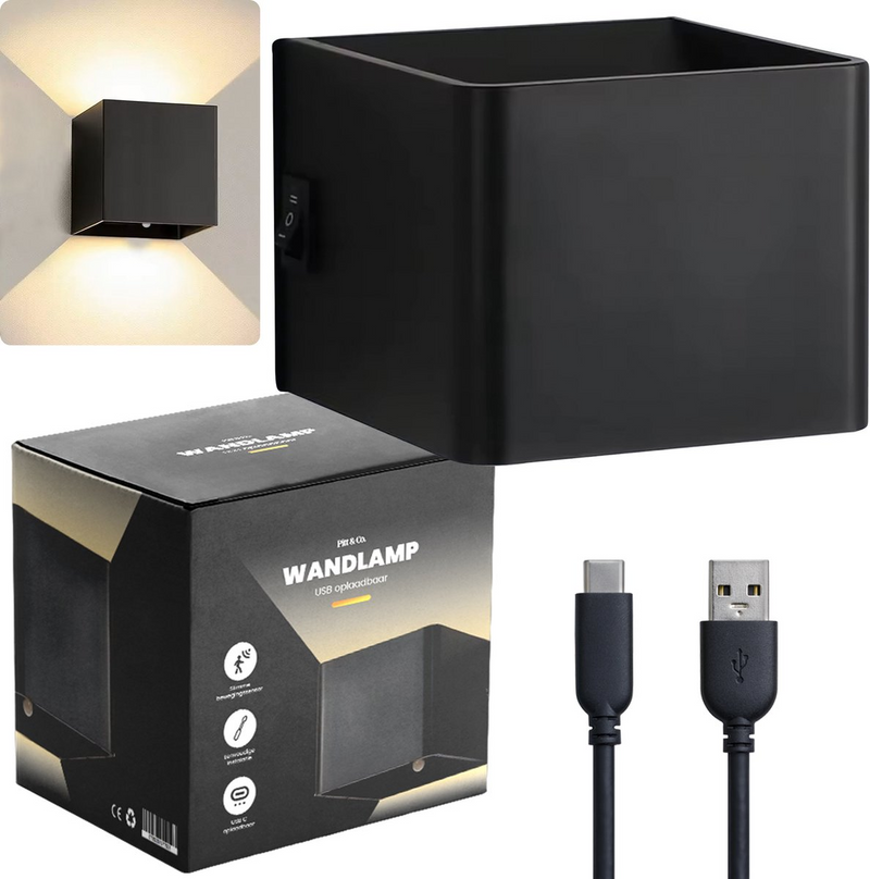 De wandlamp is eenvoudig op te laden via USB-C en biedt langdurig helder licht, ideaal voor elke kamer in huis. Dankzij de meegeleverde magneetplaat, lijm en schroeven is de installatie een fluitje van een cent.